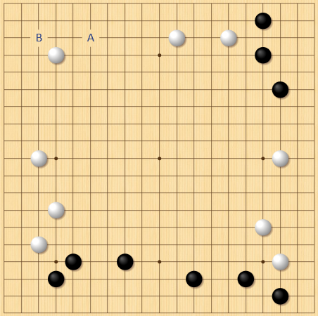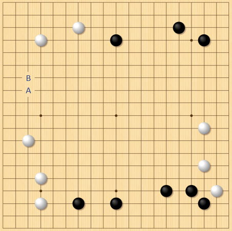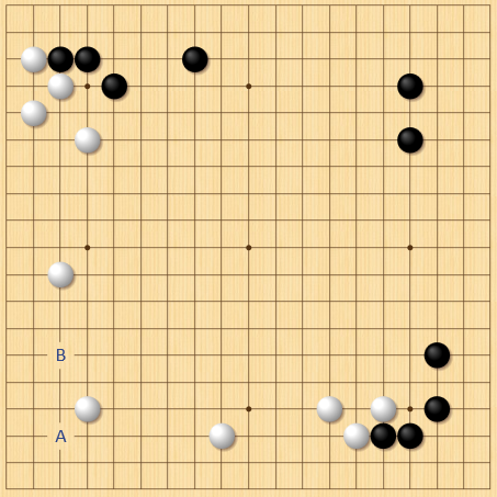 布石:相手の両翼の広がりが小さいときは三々に進入。