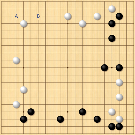 布石:広いほうに入った後は二間ビラキと三々が見合い。